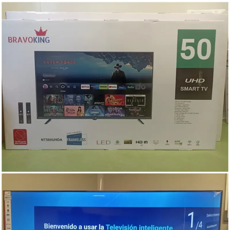 📺✨ Disfruta del Smart TV BRAVOKING 50” UHD con diseño sin bordes y sistema Android 14.