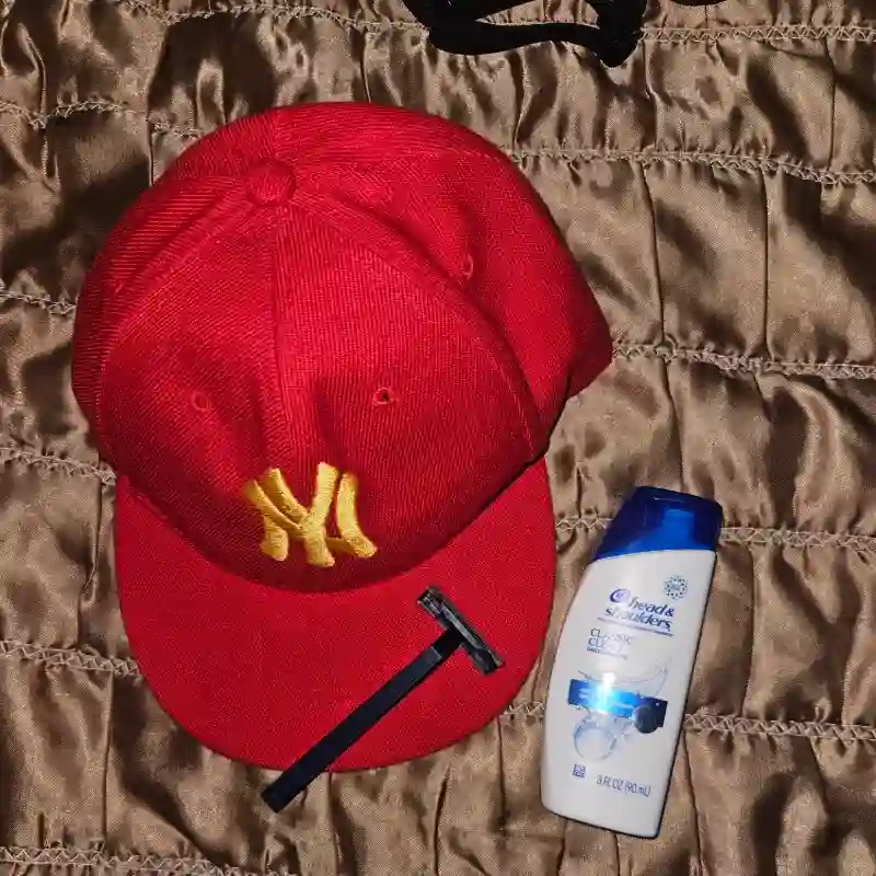 Una gorra de los NY Un mini Champu Head&Shoulder 90ml Una maquina de afeitar