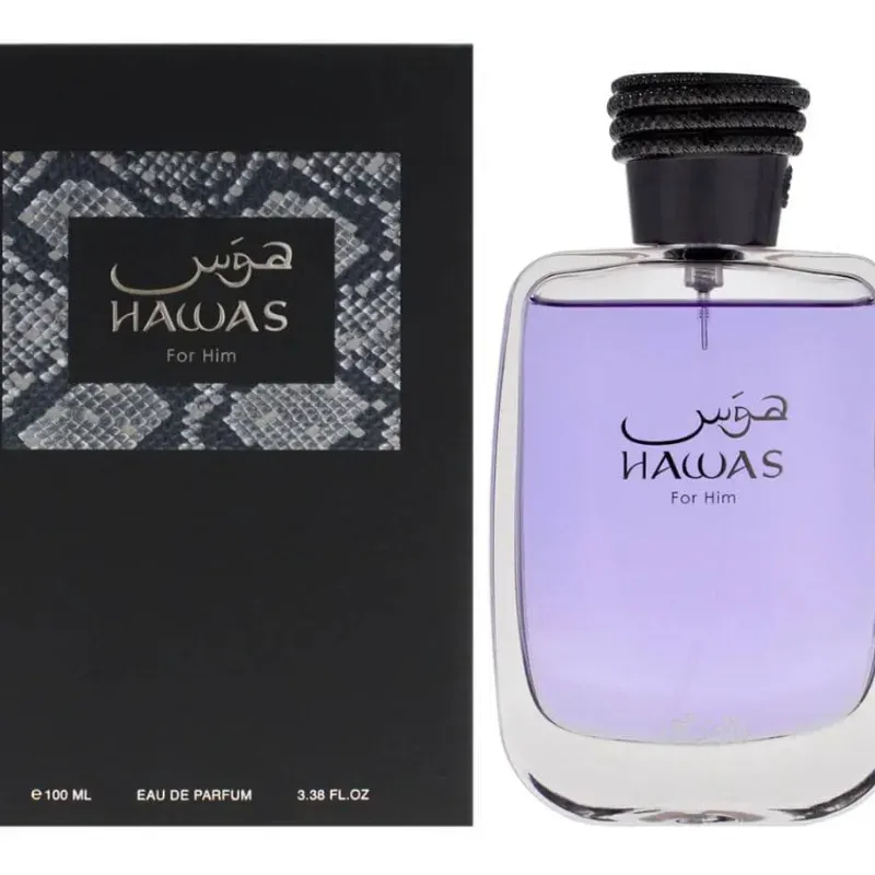 Hawas for Him de Rasasi es un perfume masculino fresco, dulce y acuático, con una salida frutal y especiada. Su corazón es limpio y afrutado, y termina en un fondo cálido, almizclado y amaderado.