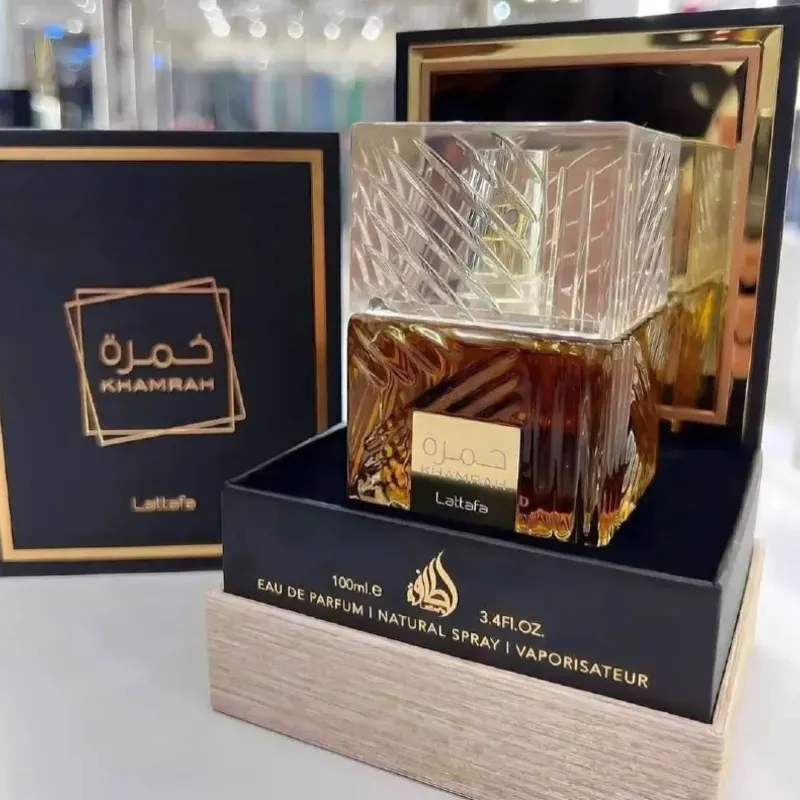 Khamrah de Lattafa es un perfume unisex dulce, especiado y muy intenso, con una salida cálida de canela y nuez moscada. Su corazón es goloso y afrutado, y termina en un fondo cremoso, ambarado y vainillado.