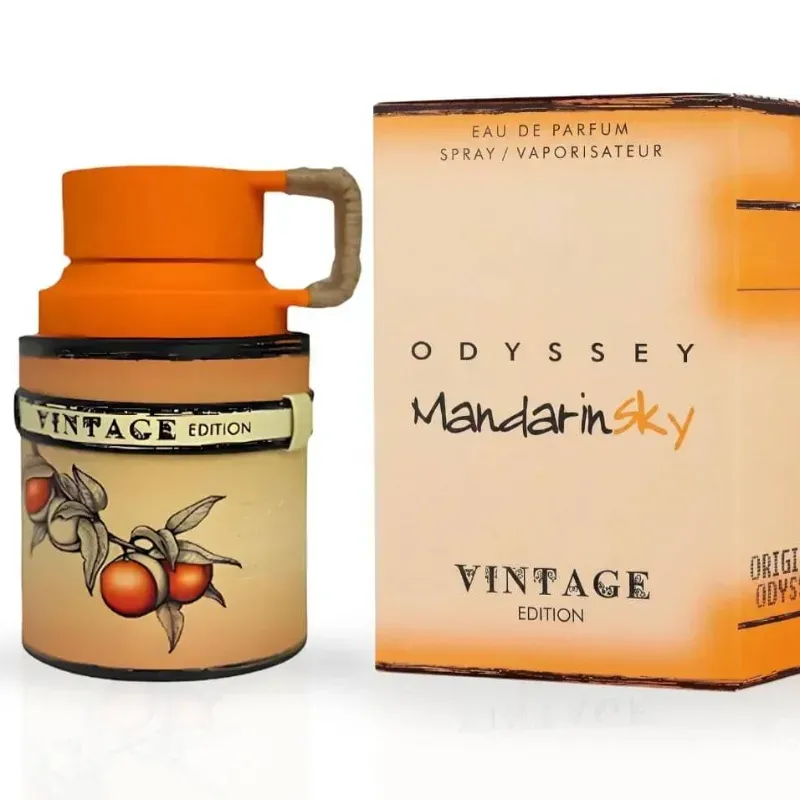 Odyssey Mandarin Sky Vintage Edition de Armaf es un perfume unisex fresco y especiado, con una salida cítrica de mandarina. Su corazón es suave y aromático, y termina en un fondo cálido, amaderado y ambarado.
