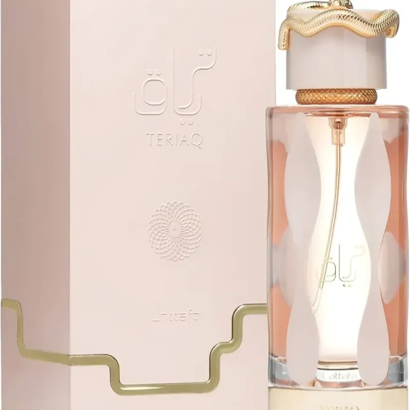 Teriaq de Lattafa es un perfume unisex dulce, cálido y sofisticado, con una salida golosa de caramelo, almendra y frutas. Su corazón es floral y ligeramente ácido, y termina en un fondo cremoso, amaderado y sensual.