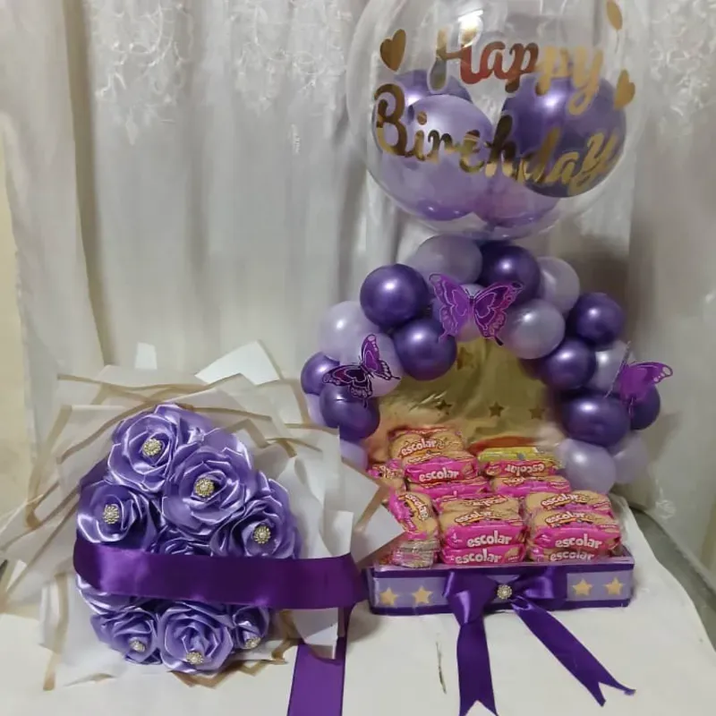 Ramo 40 galletas rellena Decoración con globos de latex y globo burbuja