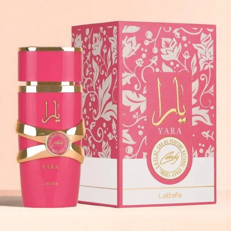 es una fragancia de la familia olfativa Floral Frutal Gourmand para Mujeres. Esta fragrancia es nueva. Yara Candy se lanzó en 2024. Las Notas de Salida son grosellas negras y Mandarina verde; las Notas de Corazón son Caramelo de fresa efervescente y gardenia; las Notas de Fondo son vainilla, almizcle, ámbar y sándalo.