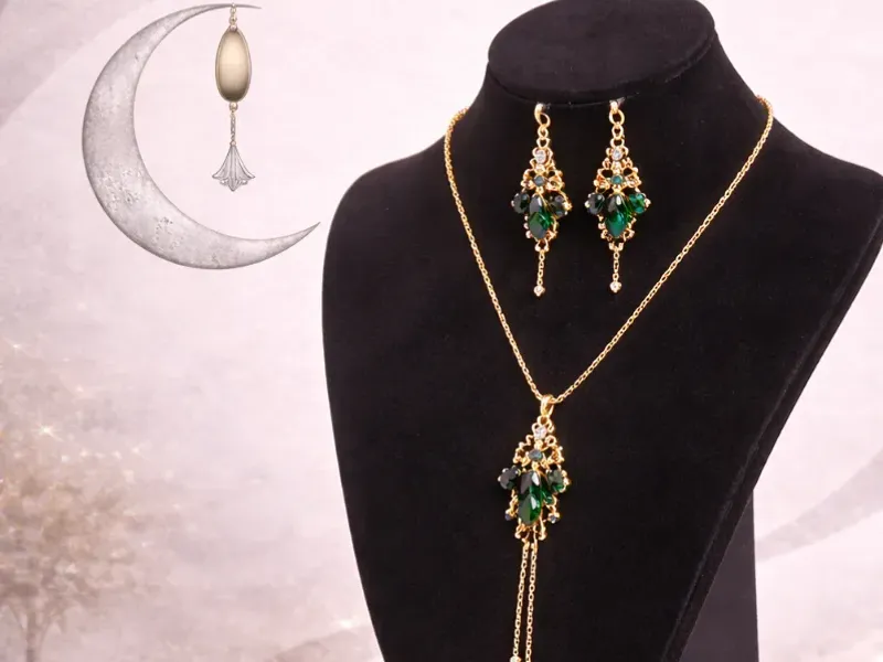 Conjunto de acero inoxidable doblado compuesto por un collar con colgante y un par de aretes.