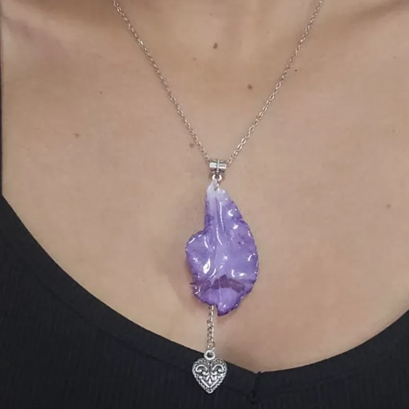 Collares con dijes de pétalos de orquídeas conservadas en resina.