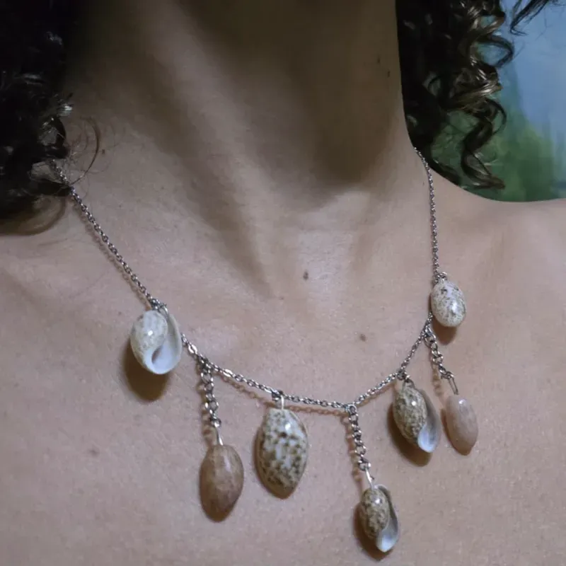 Collar confeccionado con acero inoxidable y caracoles extraídos del mar.
