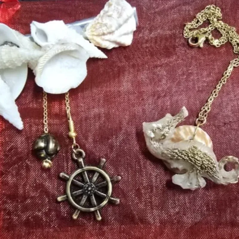 Conjunto de hebilla y cadena de acero inoxidable dorado con productos del mar.