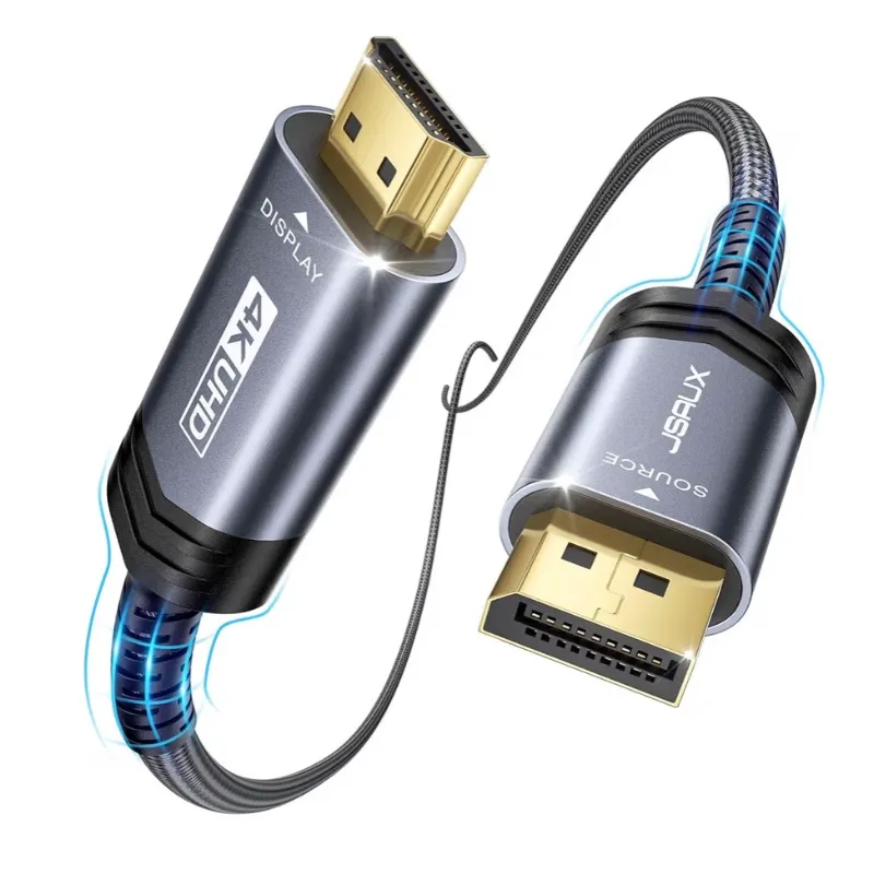 JSAUX - Adaptador de cable DisplayPort a HDMI 4K de 10 pies, video DP a HDMI macho UHD 4K@30Hz|2K@60/1080P@120 de nylon, cable unidireccional DP a HDTV para Dell, proyector, computadora de escritorio