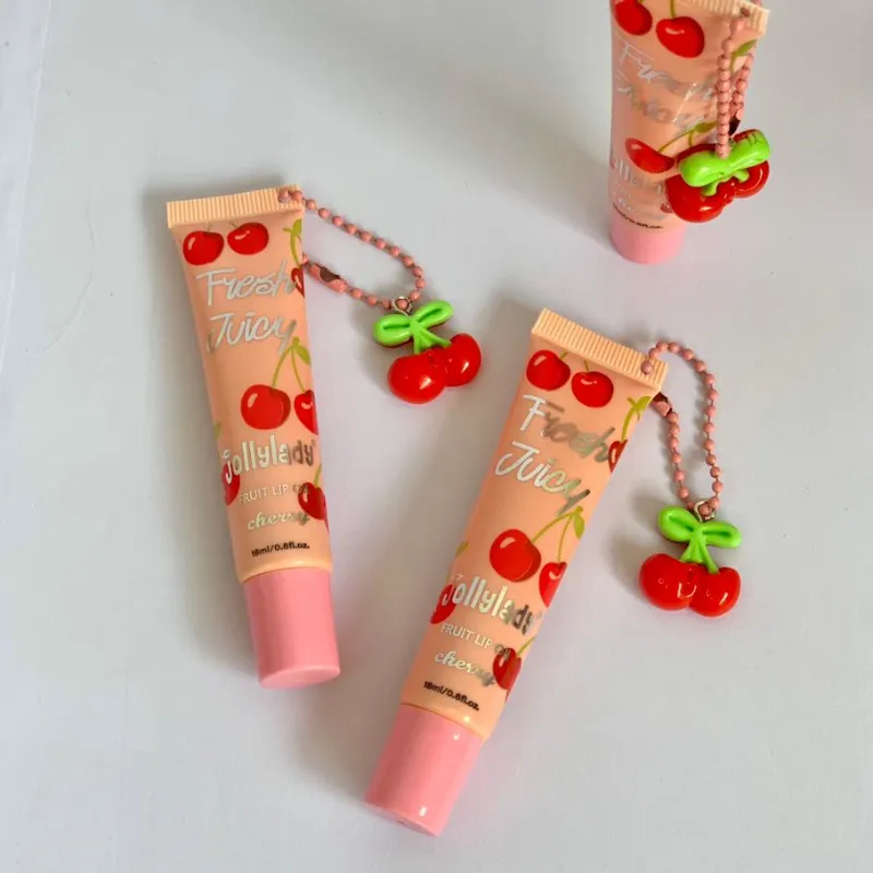 👉🏻Brillo liso con rico aroma a cereza 👉🏻Linda presentación con colgante en forma de cereza