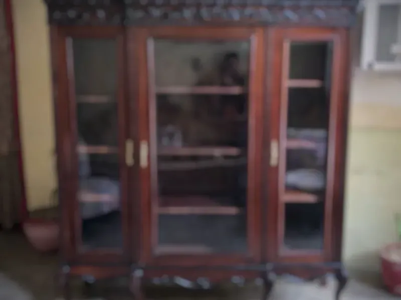 Librero antiguo acabado de restaurar. De tres divisiones independientes con tres entrepaños cada una. Tiene sus espejos originales biselados y su llave para las tres puertas.
