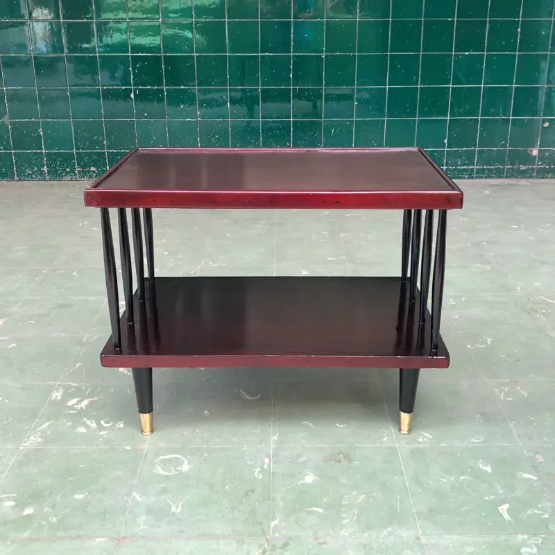 Mesa antigua acabada de restaurar. Con sus casquillos originales en las patas.