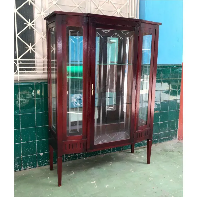 Vitrina antigua acabada de restaurar. Espejo, cristales y dos entrepaños de cristal; todos son los que traía originalmente. Tiene su yale con su llave funcional.