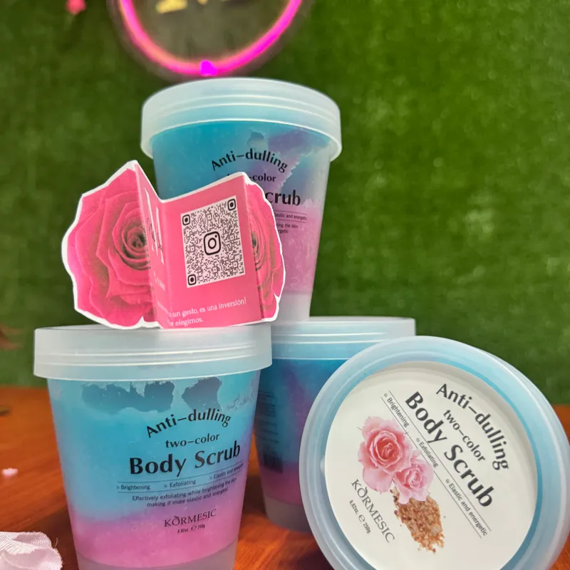 Textura gruesa, azucarado. Exfolia perfectamente manos y pies dejando una textura suave en la piel.