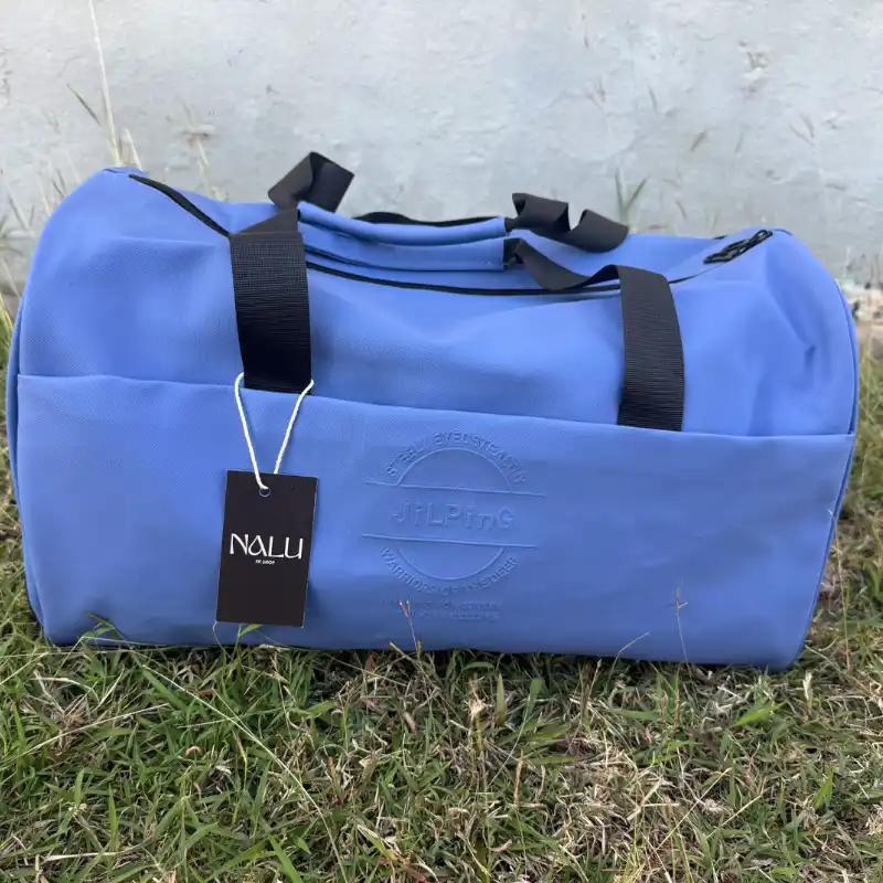 Bolso deportivo moderno y resistente en tono azul, con amplio compartimento principal y asas reforzadas para mayor comodidad. Su diseño minimalista y elegante lo hace ideal para gimnasio, viajes cortos o uso diario.