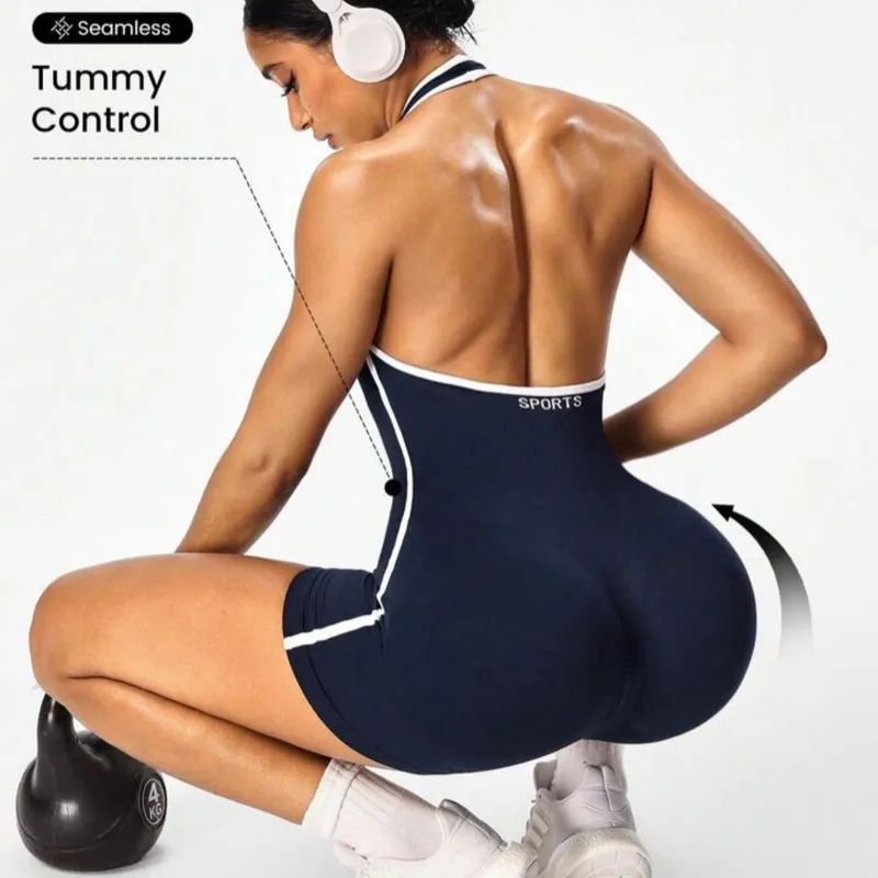 Mono sin costura de unicolor con cuello halter y espalda descubierta.
