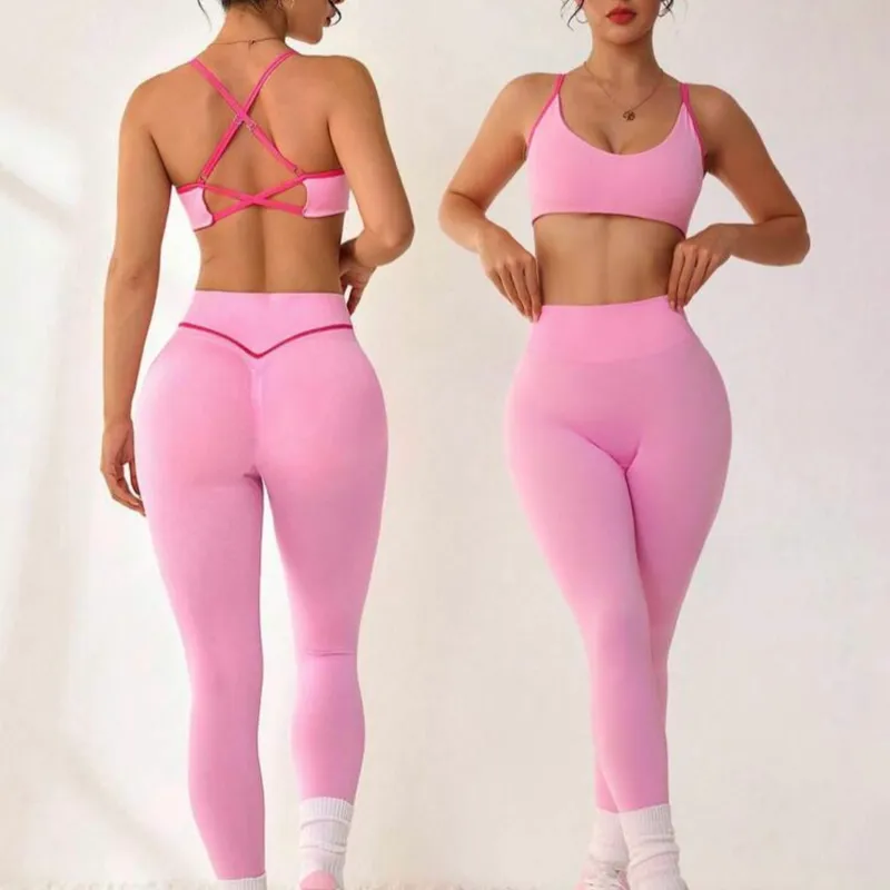 Conjunto de ropa deportiva de cintura alta con color contraste y sin costuras.
