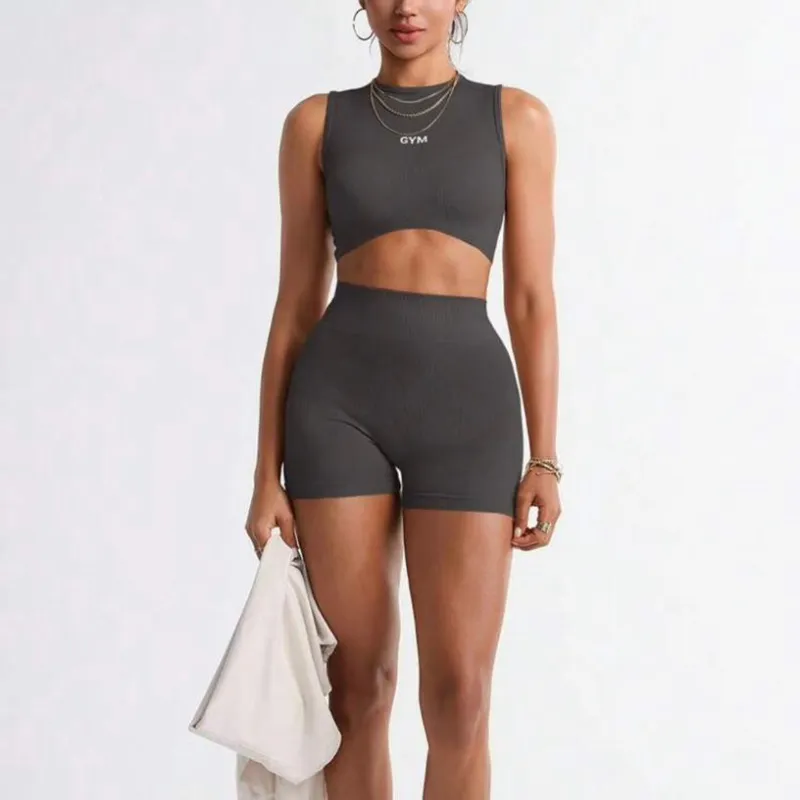 Conjunto de top de tirantes y shorts de yoga.