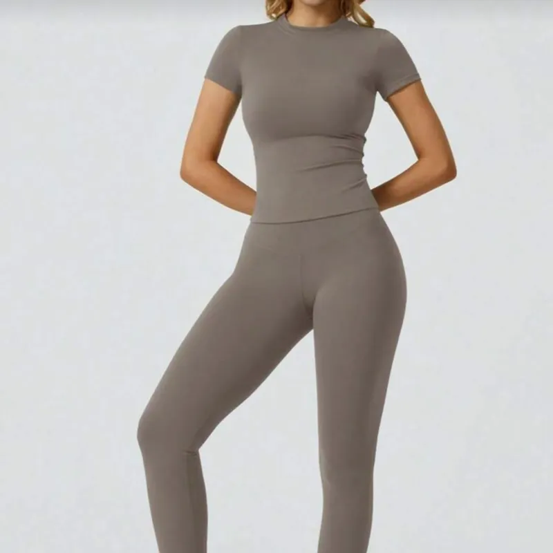 Conjunto deportivo unicolor, minimalista de manga corta y pantalones largos