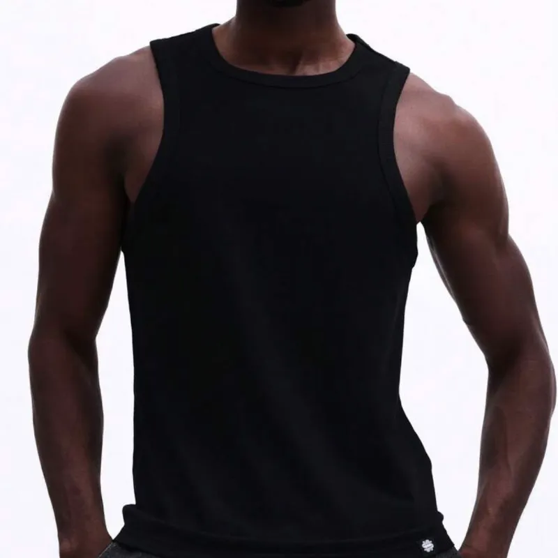 Camiseta de tirantes de cuello redondo esencial básica para uso casual diario en verano y primavera, de algodón sólido en corte regular.