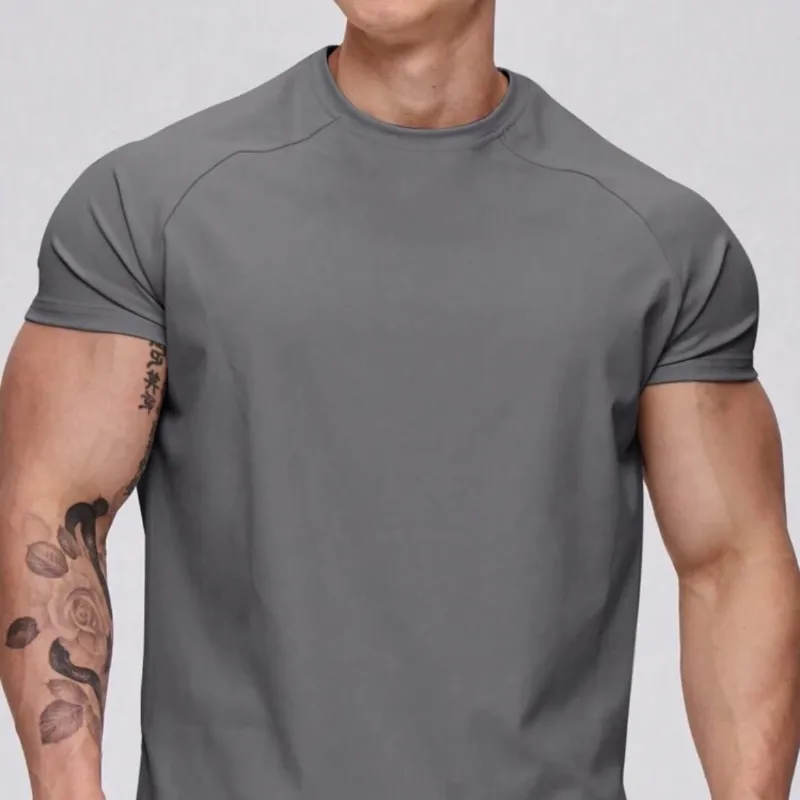 Camiseta deportiva de manga corta para hombres - Entrenamiento y gimnasio y entrenamiento, compresión casual que absorbe la humedad, secado rápido, gris oscuro, ajuste regular, cuello redondo, alta elasticidad - Estilo novio Camiseta deportiva de verano de unicolor para hombres, Camiseta de gimnasio Camiseta de entrenamiento Camiseta de gimnasio transpirable