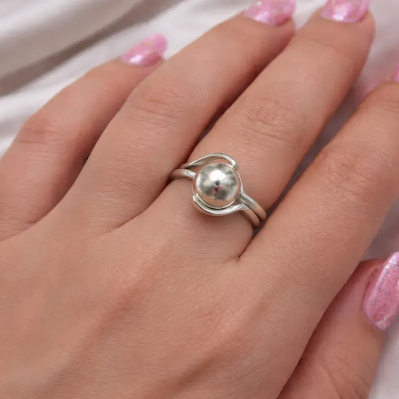 Anillo de plata exclusivo con bola. Medida 8