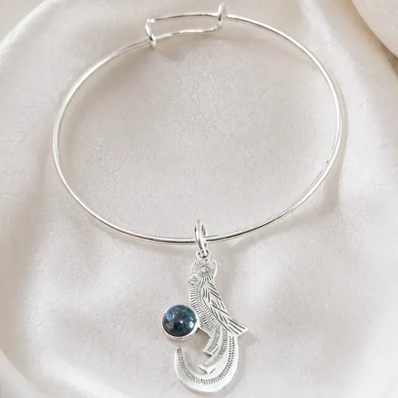 Pulsera de plata ajustable diseño exclusivo con dije de colibrí.