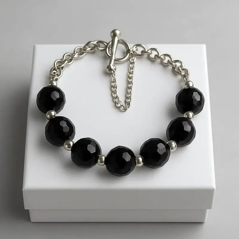 Pulsera de piedra semipreciosa Onix. 20 cm de diámetro