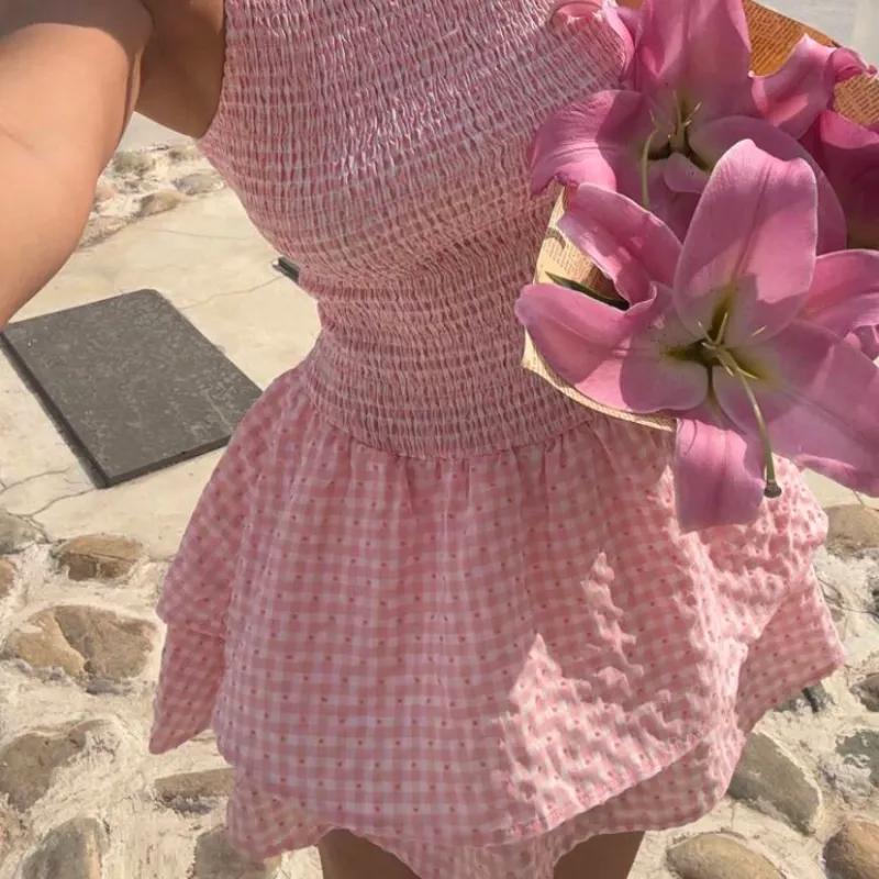 Vestido corrugado rosa