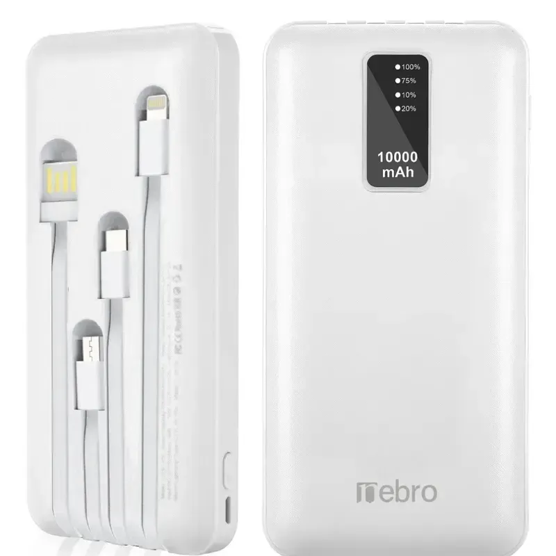 Cables integrados: Incluye múltiples cables para diferentes dispositivos (USB, Tipo C, V8, Iphone)