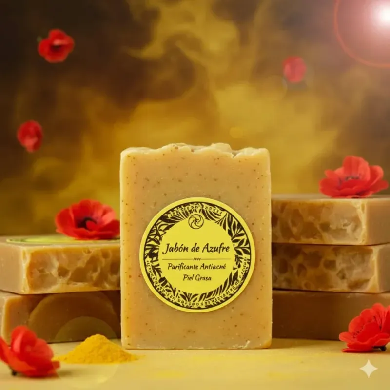 100 g Purificante y equilibrante para pieles problemáticas Elaborado mediante saponificación en frío, este jabón artesanal aprovecha las propiedades tradicionales del azufre, conocido por su acción antibacteriana, antifúngica y reguladora de la grasa cutánea. Ideal para tratar acné, exceso de sebo o irritaciones, ayuda a desinfectar, exfoliar suavemente y mejorar la textura de la piel sin resecarla en exceso.