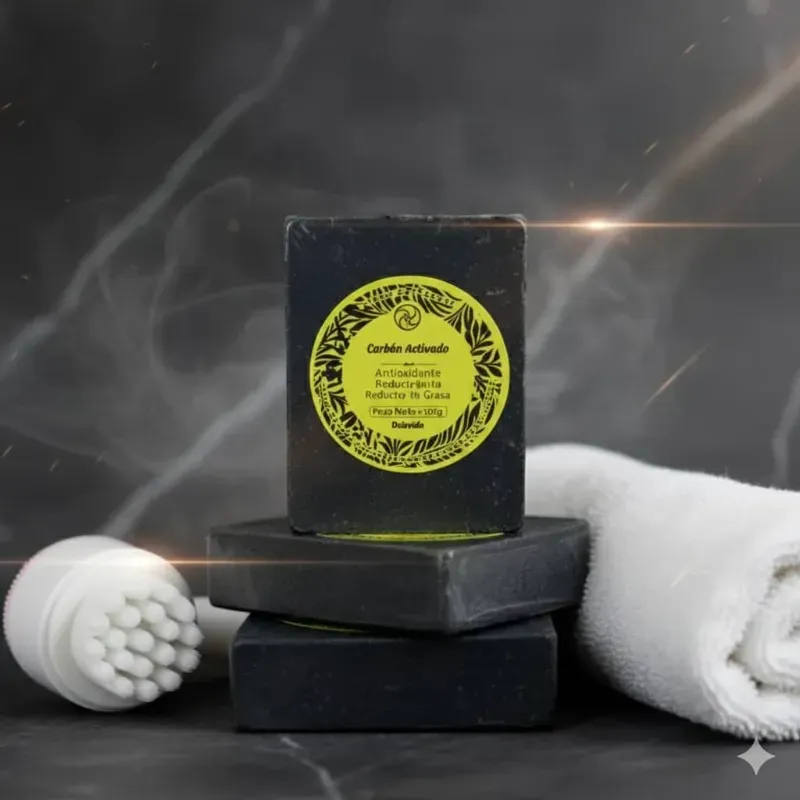 100 G Purificante y detoxificante Este jabón artesanal combina las propiedades purificantes del carbón activado con aceites vegetales de alta calidad. Ideal para pieles mixtas y grasas, ayuda a eliminar impurezas, controlar el exceso de sebo y suavizar la textura de la piel. Su aroma neutro y su espensa cremosa lo convierten en un básico para una rutina de cuidado facial y corporal. Se recomienda aplicarlo 1 o 2 veces por semana, si su piel no es muy grasa, y dejar actuar por aproximadamente 50 segundos. Puede alternar su uso con otro jabón neutro de su preferencia. En el caso de acné se obtienen buenos resultados combinando este producto con el jabón de azufre.
