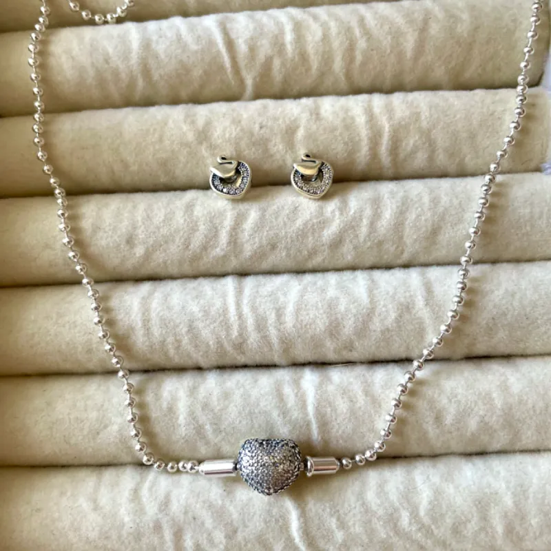 Conjunto Pandora collar pave essences cierre de corazón + aretes a juego
