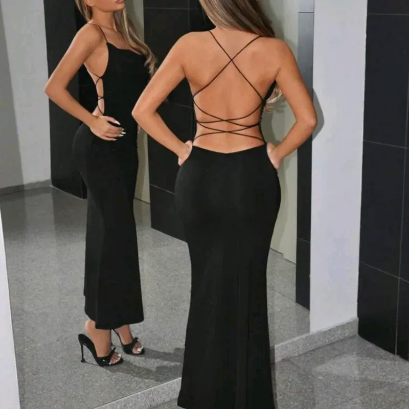 VESTIDO PARA MUJER NEGRO LARGO TIRANTES CRUZADOS