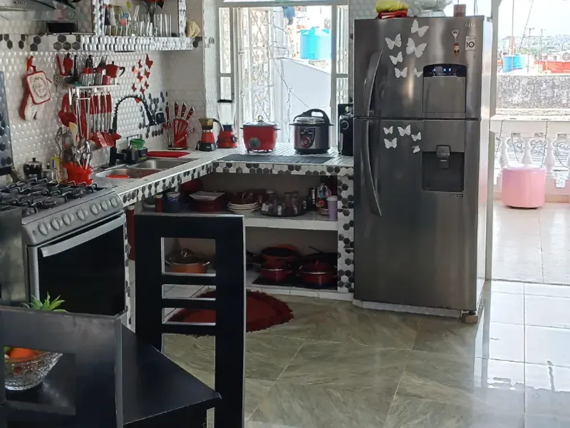 Juego de sala, televisor grande, 2 juegos de comedor (uno de 6 plazas y otro de 4), 2 sillones de madera, mesa escritorio, frío, cocina, 2 camas cameras y 2 personales, 3 escaparates, entre otras cosas, se dejan adornos, utensilios de cocina... (Todo lo que está dentro de la casa).