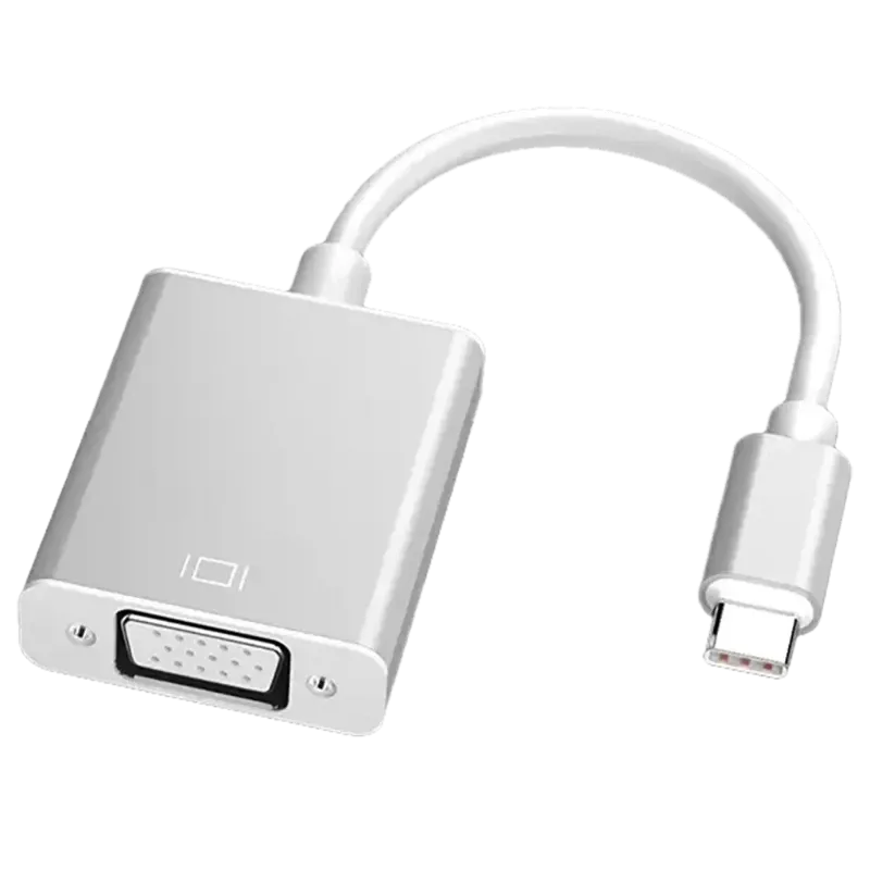 Adaptador USB Tipo C a VGA diseñado para conectar dispositivos modernos a monitores o proyectores con entrada VGA. Compatible con equipos que incorporan puertos USB-C o Thunderbolt 3 y 4, como laptops y algunos smartphones.
