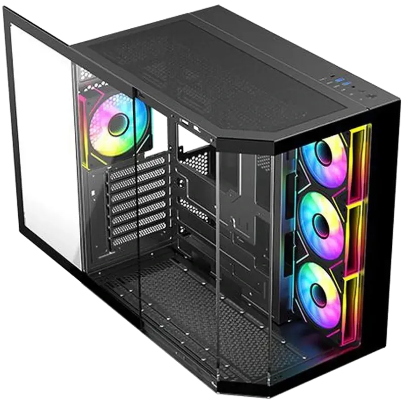 Incluye 4 ventiladores ARGB con controlador HUB y soporte para sincronización con placa base, ofreciendo iluminación personalizable. Su diseño optimizado permite instalar tarjetas gráficas de gran tamaño y múltiples sistemas de refrigeración líquida, siendo una excelente opción para setups exigentes y personalizados.