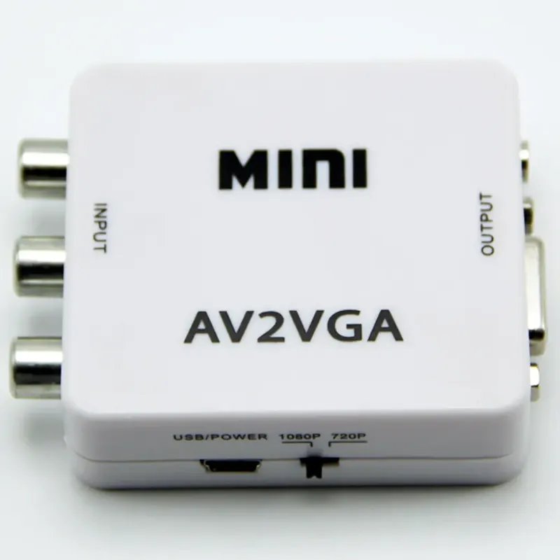 Convertidor AV (RCA) a VGA con audio diseñado para transformar señal analógica en una salida VGA compatible con monitores o proyectores. Ideal para conectar consolas, cajas digitales u otros dispositivos con salida RCA a pantallas con entrada VGA.