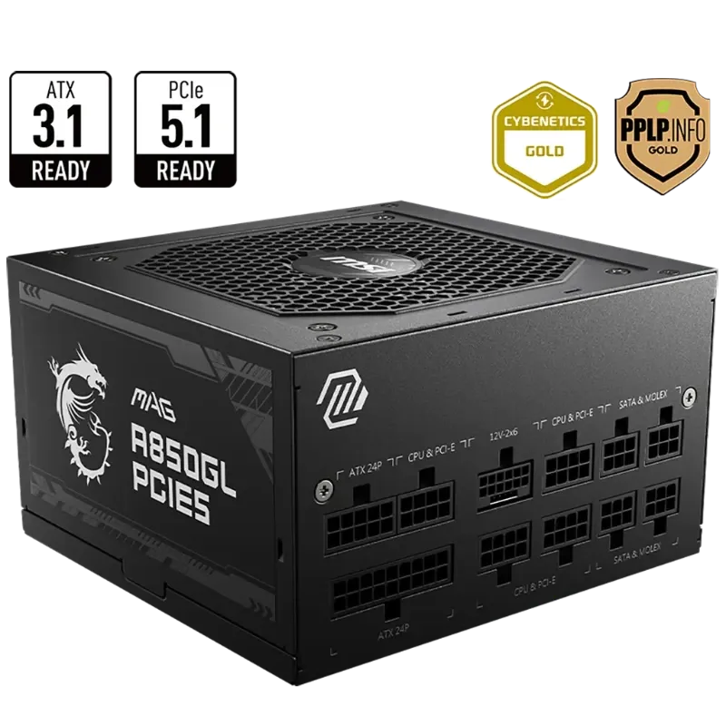 Fuente MSI MAG A850GL 850W 80 Plus Gold Full Modular PCIe 5.0