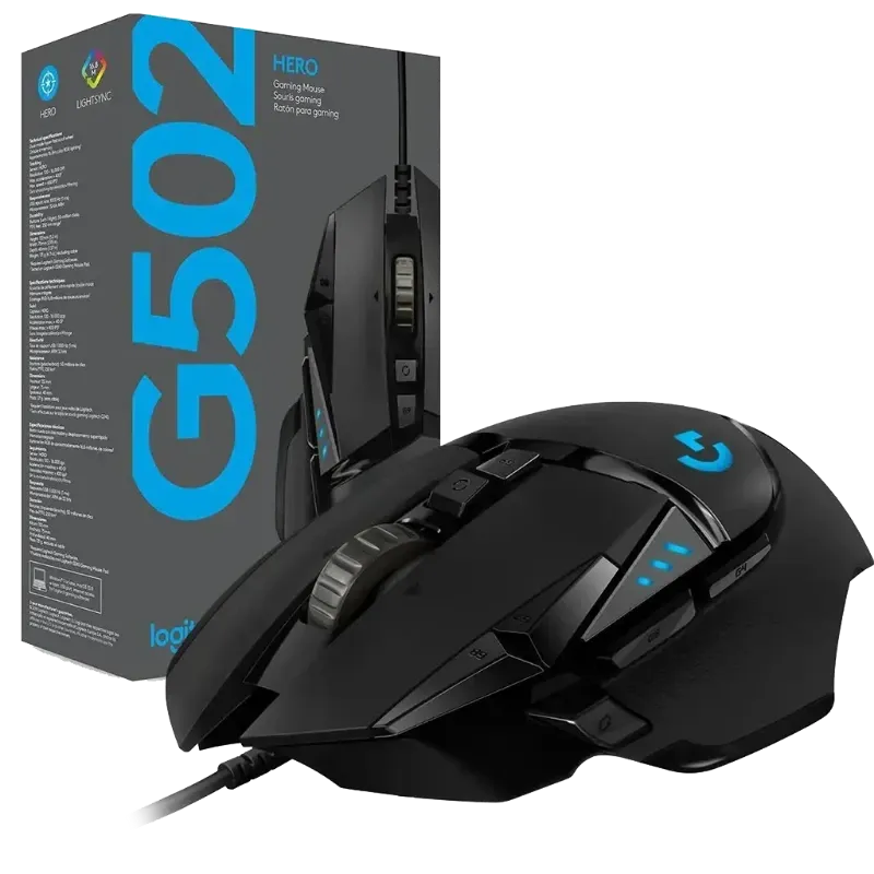 El Logitech G502 Hero es un mouse gaming de alto rendimiento diseñado para ofrecer precisión extrema, personalización avanzada y una experiencia superior en cada partida. Equipado con el sensor HERO de hasta 25600 DPI, garantiza un seguimiento preciso y sin aceleración.
