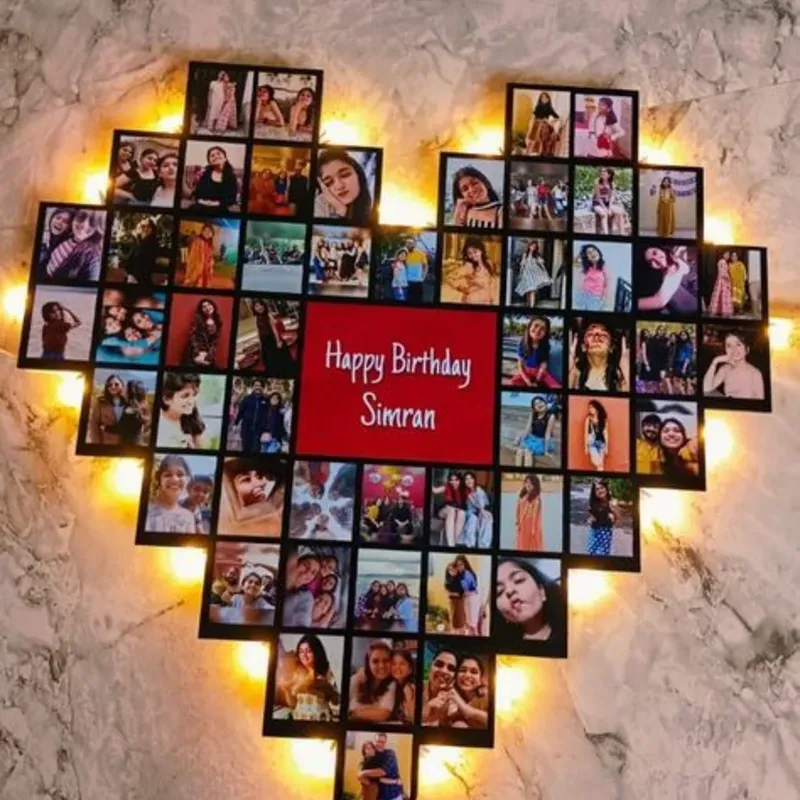 Corazón con luces led, mide 20 cm de ancho por 19 de largo. Formado de 20 a 50 fotos en dependencia de la plantilla que elija.