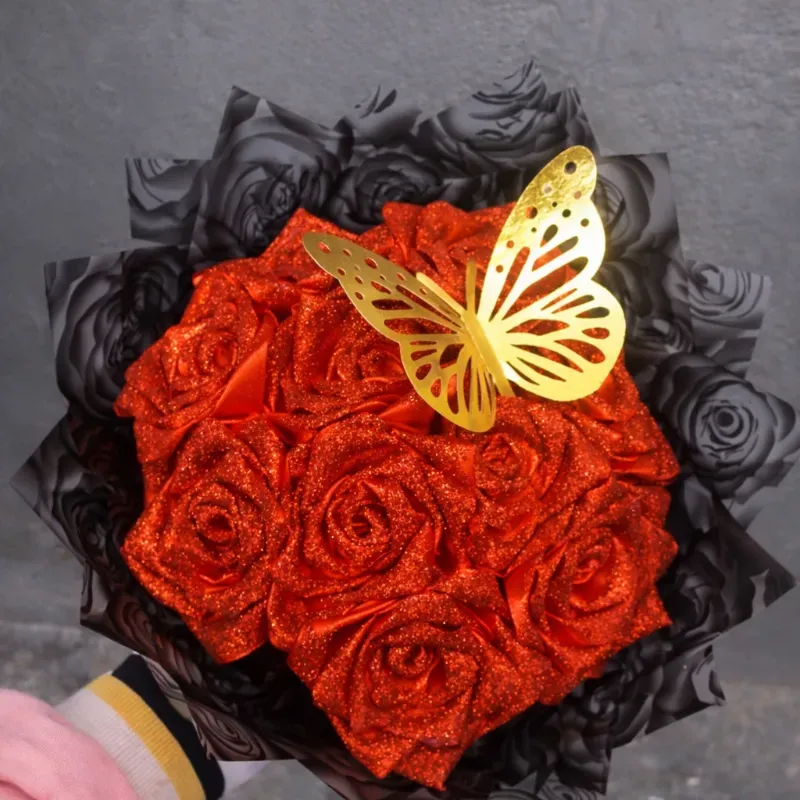 10 flores eternas del color que el cliente desee, con accesorios según lo que el cliente quiera
