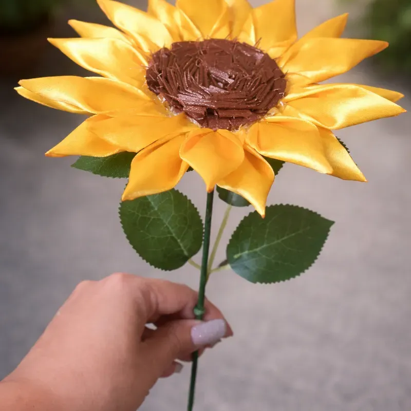 Un girasol eterno con hojas