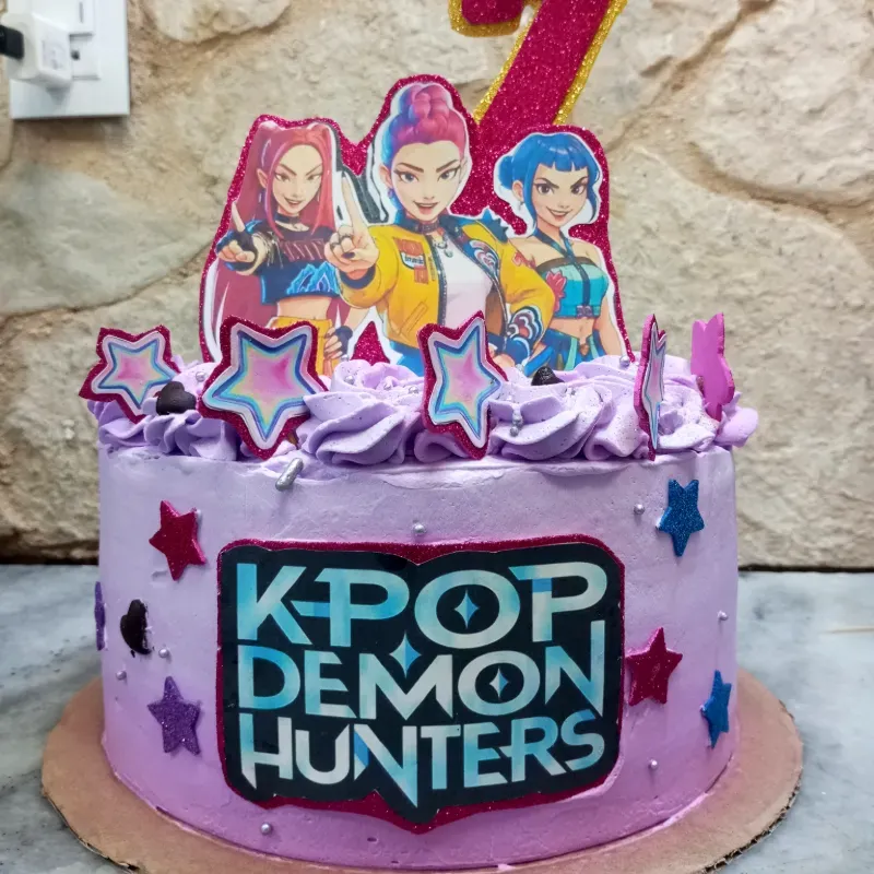 Cake de nata de 20-22cm con tres panetelas y doble relleno (uno es nata y el otro a su elección) y topers de cartulina o foto comestible temático