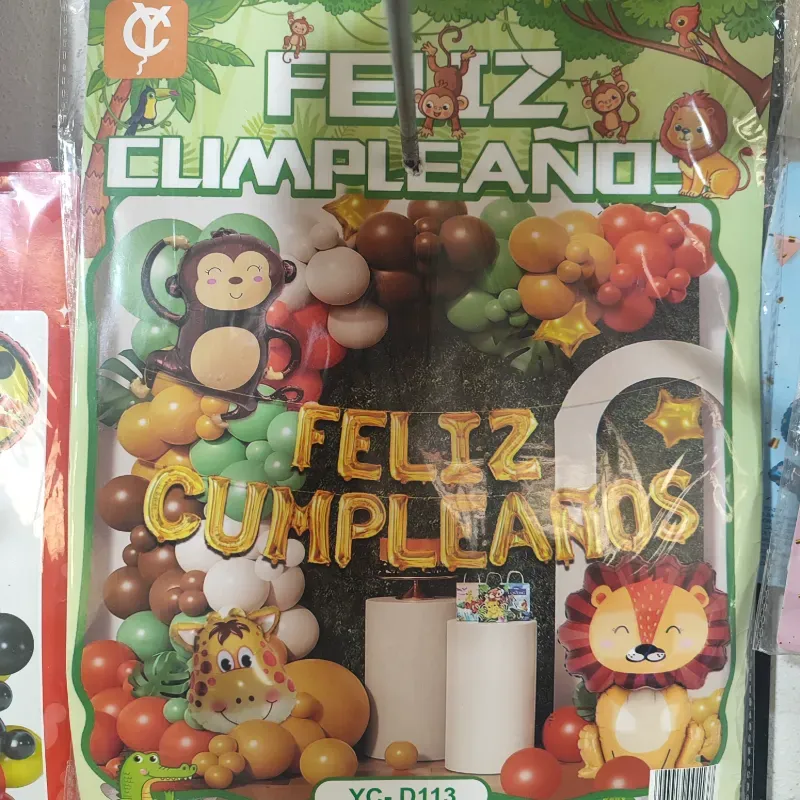 40 globos de 10 pulgadas 8 globos de 5 pulgadas 3 estrellas de 5 pulgadas 3 animales metálicos inflables (jirafa, León, mono) Feliz cumpleaños inflable Cinta Arco Pegapuntos