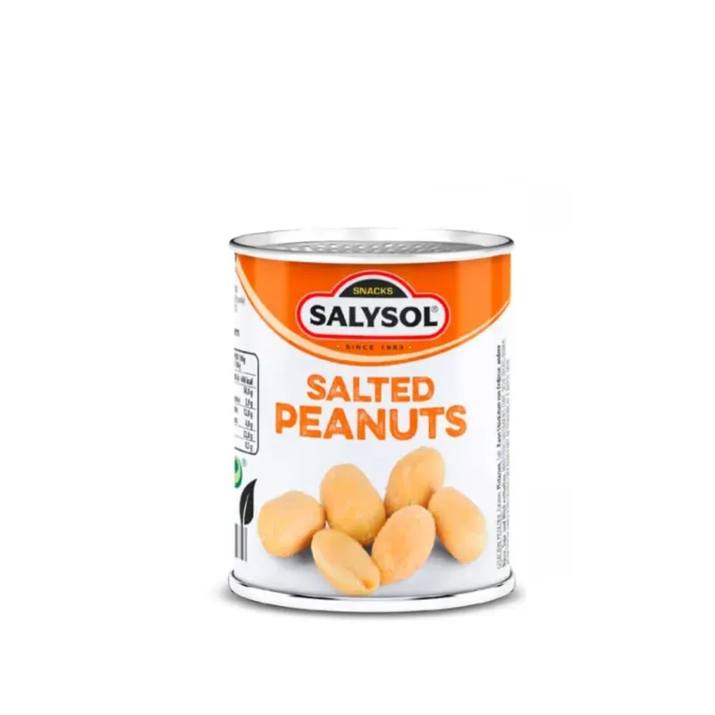 La Lata de Cacahuetes Salados Salysol, en su práctico formato de 60 g, ofrece cacahuetes seleccionados, tostados y ligeramente salados. Perfectos para picar entre horas, acompañar bebidas o llevar a cualquier parte.