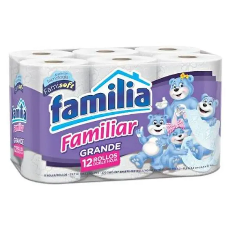 El Papel Higiénico Familiar Familia, en su pack económico de 12 rollos, ofrece la combinación perfecta de confort y absorción para el cuidado diario de toda la familia. Beneficios: ✅ Doble capa de suavidad – delicado con la piel y altamente absorbente. ✅ Resistencia al uso – no se deshace ni deja residuos. ✅ Pack familiar de 12 rollos – ideal para ahorrar y tener siempre disponible. ✅ Calidad Familia – confianza y cuidado en cada uso. Ideal para: Hogares familiares, baños de invitados, oficinas pequeñas o como reserva práctica para el día a día. ¡Comodidad que nunca se acaba!