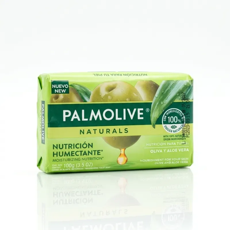 El Jabón de Baño Palmolive Oliva y Aloe Vera, en su barra de 100 g, limpia suavemente mientras hidrata gracias a las propiedades del aceite de oliva y el poder calmante del aloe vera. Deja tu piel suave, fresca y saludable.