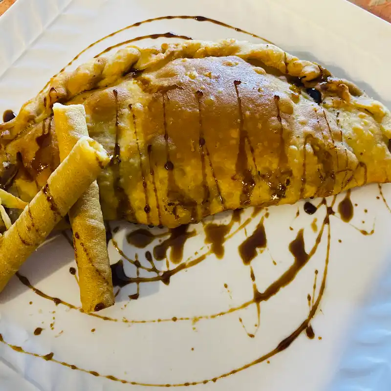 Una empanada totalmente diferente y maravillosa, rellena de Dulce de Leche, mojada con sirope y acompañada de palitos de leche!