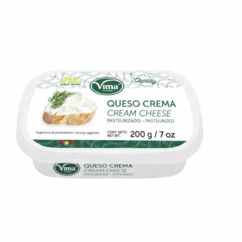 Delicioso queso crema Vima, suave y cremoso, perfecto para untar en pan, galletas o preparar recetas dulces y saladas. Ideal para desayunos y meriendas. 🧀✨